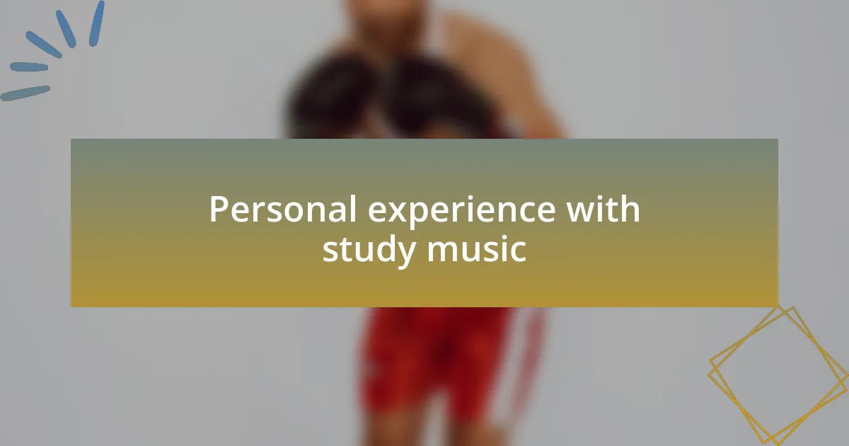 One of my favorite memories of using music while studying revolves around preparing for final exams. I created a specific playlist filled with ambient electronic tracks that felt like a sonic cocoon. Each time I hit play, it felt like entering a focused zone, and I often lost track of time. Have you ever experienced that blissful state where distractions fade away? For me, that magical moment became a lifeline during hectic study weeks.
